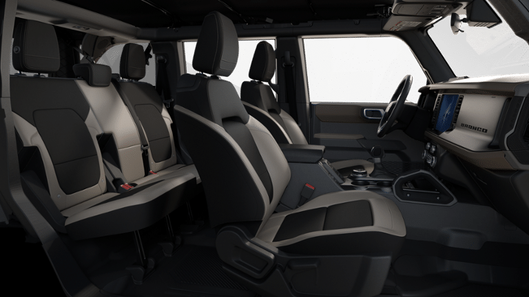 Blending rugged good looks with a refined interior, the Bronco Big Bend 222A offers the perfect balance of style and substance. The Carbonized Gray exterior and Gray interior create a striking, modern aesthetic, while the available door storage bags and ambient footwell lighting add a touch of premium flair.