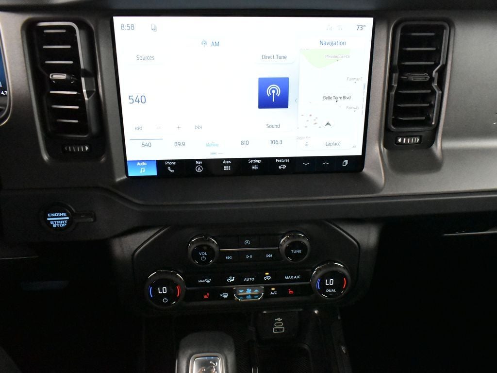 Step inside and you'll be greeted by a wealth of premium amenities, including SYNC 4 infotainment, a 400W Pro Power Onboard system, and a Carbonized Gray Molded-in-Color Hard Top that adds a touch of rugged sophistication. The Bronco's spacious interior and versatile cargo area make it the perfect companion for your next adventure, whether it's a weekend getaway or a day exploring the great outdoors.