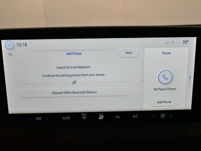 The interior of this Maverick is designed with your comfort and convenience in mind. Sink into the supportive ActiveX-trimmed front bucket seats and enjoy the convenience of SYNC 4 with enhanced voice recognition, seamlessly integrating your smartphone and providing access to a wealth of information and entertainment. The available Ford Connectivity Package with 5G modem keeps you connected on the go, while the 6-speaker audio system and SiriusXM with 360L deliver an immersive listening experience.