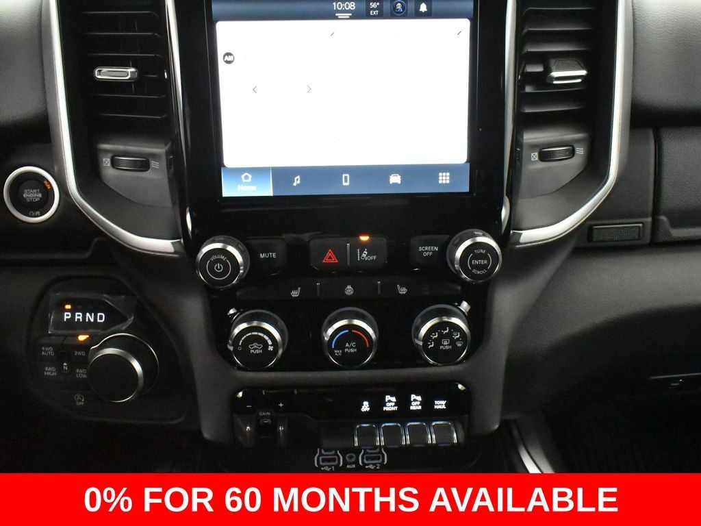This Ram 1500 is packed with a wealth of premium features, including a Uconnect 5 W with 8.4 display, SiriusXM Satellite Radio, and a 400W inverter. The cabin is equally impressive, boasting heated front seats, a heated steering wheel, and a leather-wrapped steering wheel with integrated audio controls.