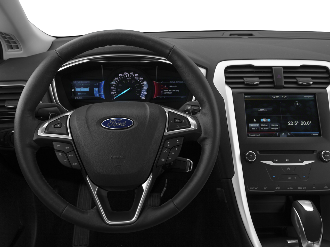 The Luxury Package and SE MyFord Touch Technology Package elevate the Fusion's cabin, providing a premium feel and advanced connectivity. Enjoy the convenience of the voice-activated navigation system, the clarity of the 10-speaker sound system, and the intuitive SYNC with MyFord Touch interface. The dual-zone automatic climate control and heated leather-wrapped steering wheel and shift knob add an extra touch of luxury, while the power moonroof lets you enjoy the great outdoors.