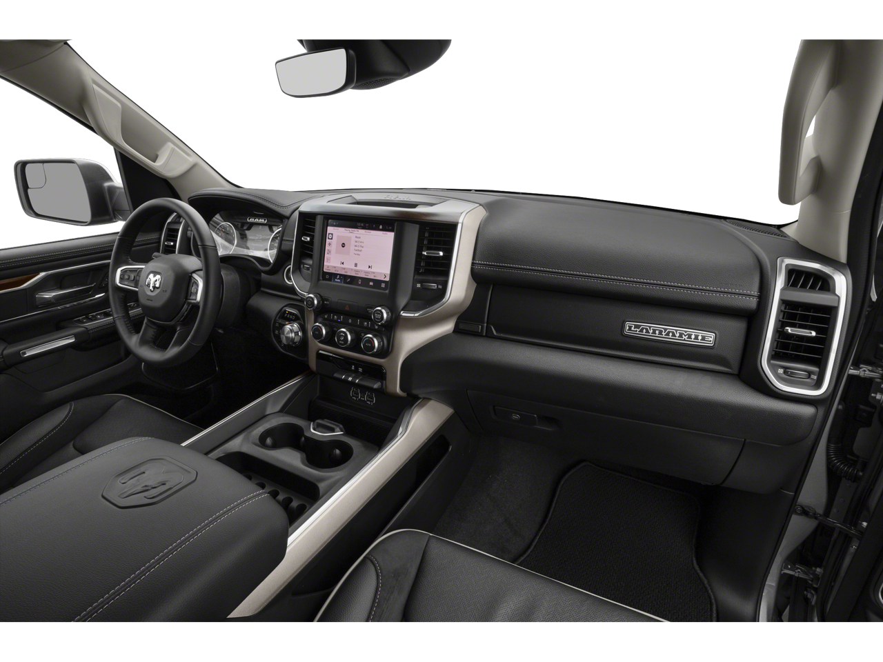Elevate your driving experience with the Laramie Level A Equipment Group, featuring remote tailgate release, auto high beam headlamp control, rain-sensitive windshield wipers, and advanced ParkSense Front/Rear Park Assist. The Sport Appearance Package adds a touch of sporty style with a body-color premium power mirrors, sport performance hood, and 20-inch premium painted wheels.