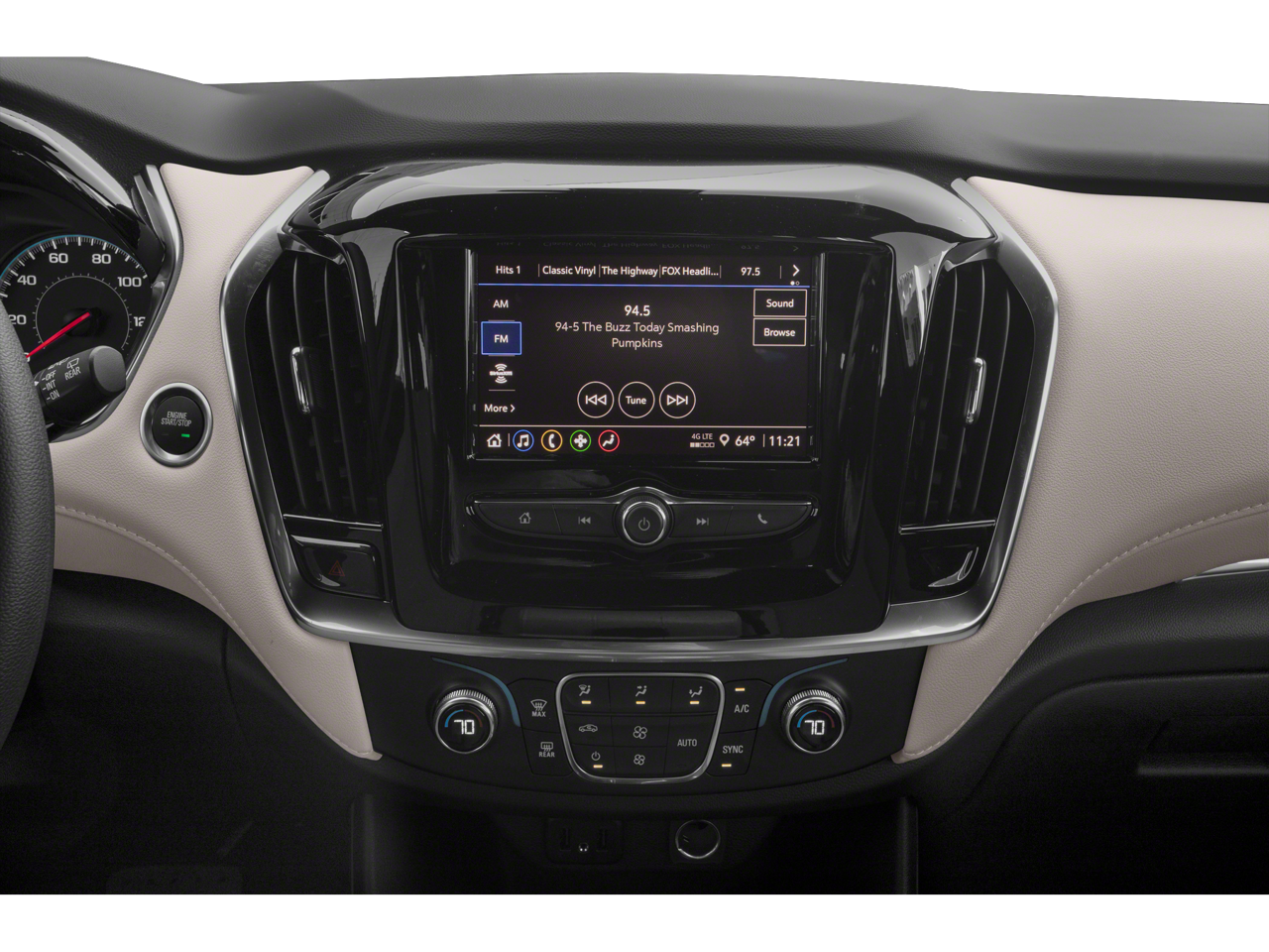 - Audio system, Chevrolet Infotainment 3 system 7" diagonal color touchscreen, AM/FM stereo. Additional features for compatible phones include: Bluetooth audio streaming for 2 active devices, voice command pass-through to phone, Apple CarPlay and Android Auto capable